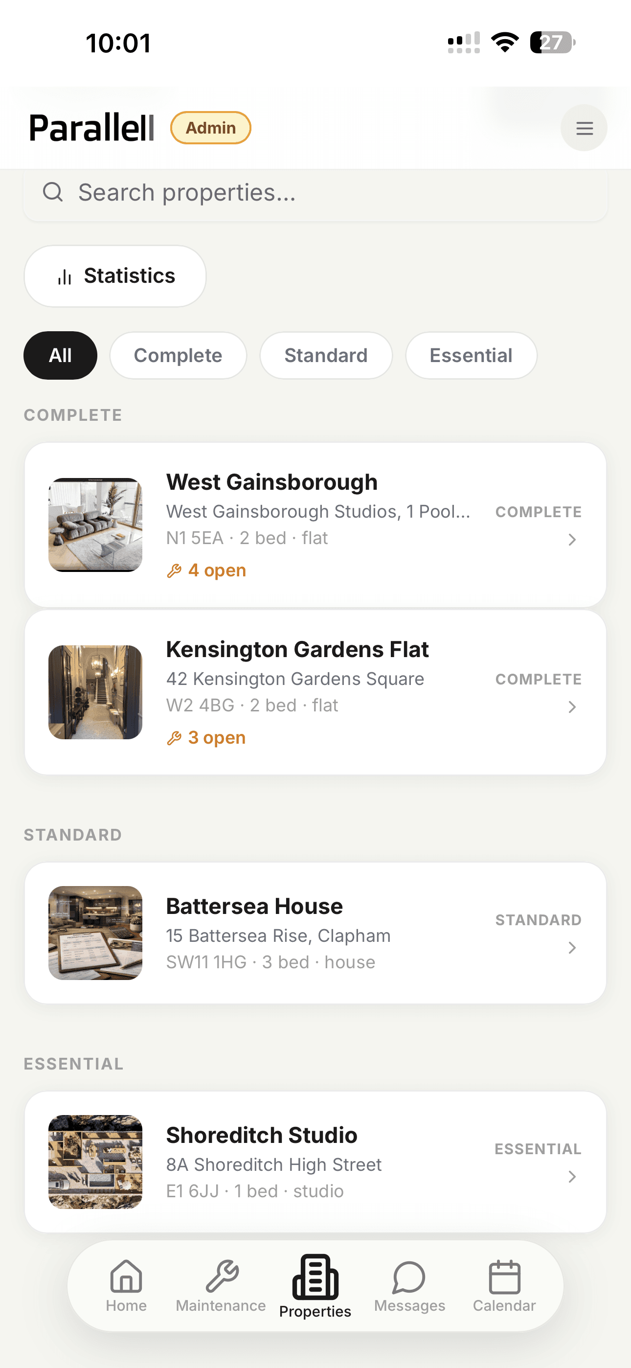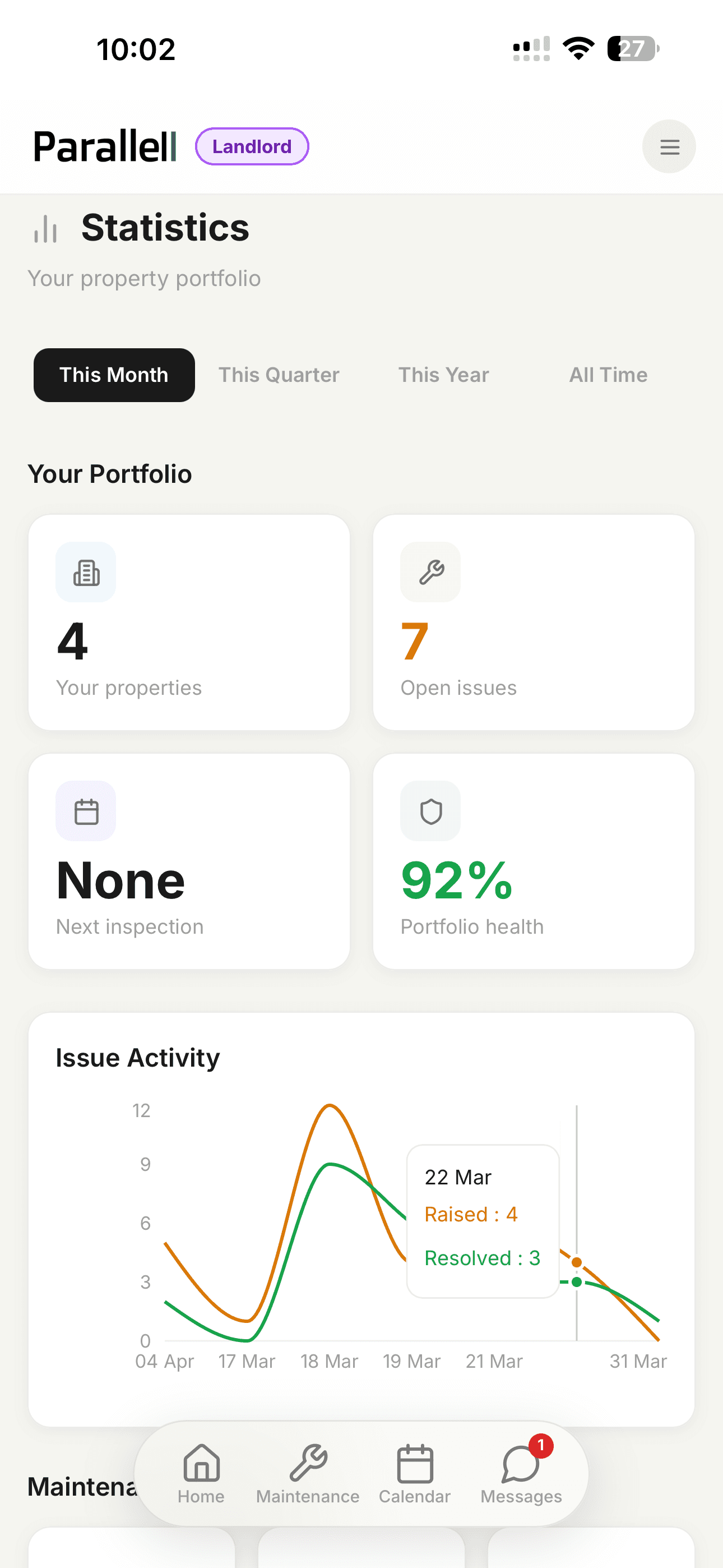 Every property managed has its own dedicated space on the Parallell platform — a live, structured record of everything that has been documented, inspected, and resolved.